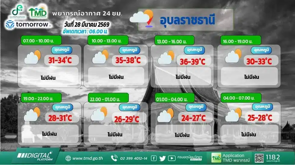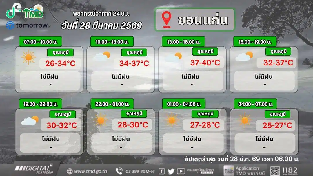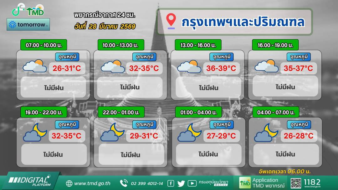 พยากรณ์อากาศของกรมอุตุฯ ออกประกาศเตือนอากาศช่วงวันที่ 28 มีนาคม -3 เมษายน 2569 สภาพอากาศร้อนถึงร้อนจัด เหนือและอีสานระวังฝนฟ้าคะนอง ลมแรง ลูกเห็บตก