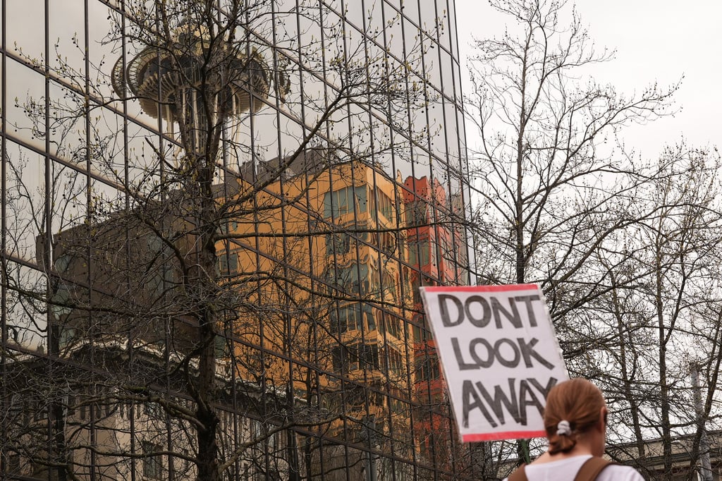 ผู้ประท้วงเดินขบวนไปตามท้องถนนในใจกลางกรุงวอชิงตัน ดี.ซี. ตลอดช่วงบ่าย ฝูงชนจำนวนมากหลั่งไหลเข้ามาในเมืองหลวงของประเทศ ผู้ชุมนุมยืนเรียงรายบนบันไดของอนุสรณ์สถานลินคอล์น พวกเขารวมตัวกันจนเต็มพื้นที่เนชันแนลมอลล์