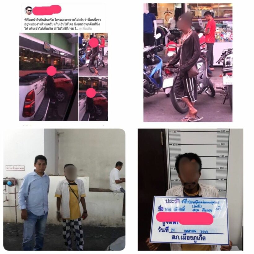 จากกรณีที่ได้รับแจ้งจากประชาชนว่ามีชายมีอาการเมาสุราหรือเมาอย่างอื่นจนเป็นเหตุให้ประพฤติตนวุ่นวายหรือครองสติไม่ได้ ได้ยืนโบกรถและเรียกเก็บเงินจากประชาชนที่นำรถเข้ามาจอดบริเวณริมถนนหน้าห้างสรรพสินค้าโรบินสัน ต.ตลาดใหญ่ อ.เมือง จว.ภูเก็ต สร้างความเดือดร้อนแก่ประชาชนเป็นอย่างมาก