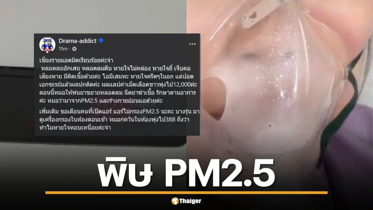 เพจ Drama-addict โพสต์เตือนภัยสุขภาพ ผู้ป่วยรับผลกระทบจากฝุ่นควันหนักจนหายใจไม่ออก เผยเครื่องวัดอากาศในห้องนอนพุ่ง 388 แจ้งเตือนประชาชนเช็กระบบกรอง