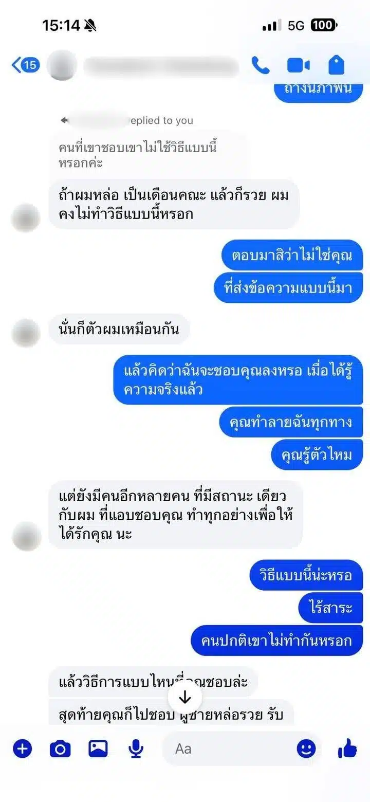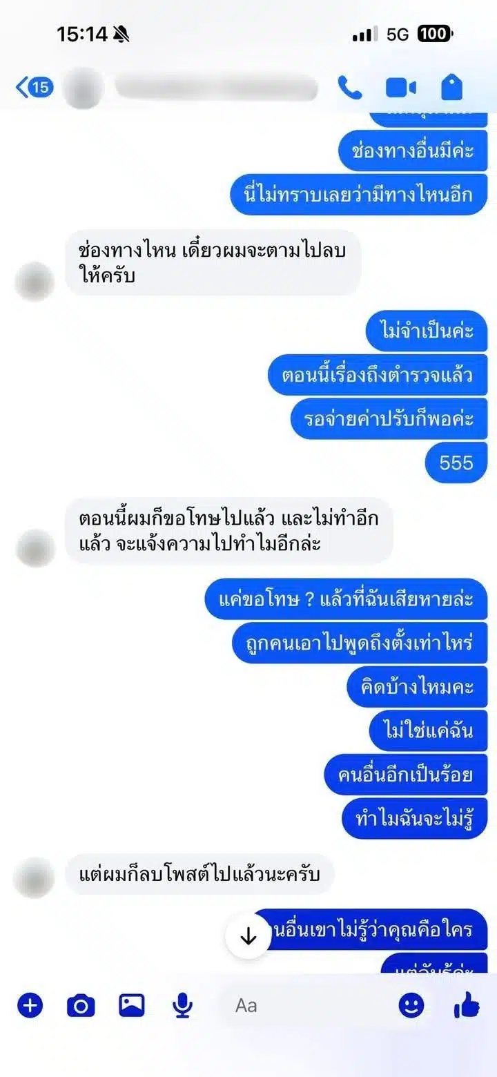 พี่กับแม่มันก็มากราบขอโทษหนู หนูก็ไม่ติดใจเอาเรื่องอะไรอีกแล้ว พอมาวันนี้ก็ไม่คิดว่ามันจะเอาไปทำกับคนอื่นอีกหลายคนค่ะ เดือดมาก ตอนนั้นโมโหมันมากจริง ๆ ค่ะ ตอนนั้นแม่เขาบอกว่ามันป่วยค่ะ แต่จำชื่อโรคไม่ได้ บอกว่าอย่าเอาเรื่องลูกเขาเลย