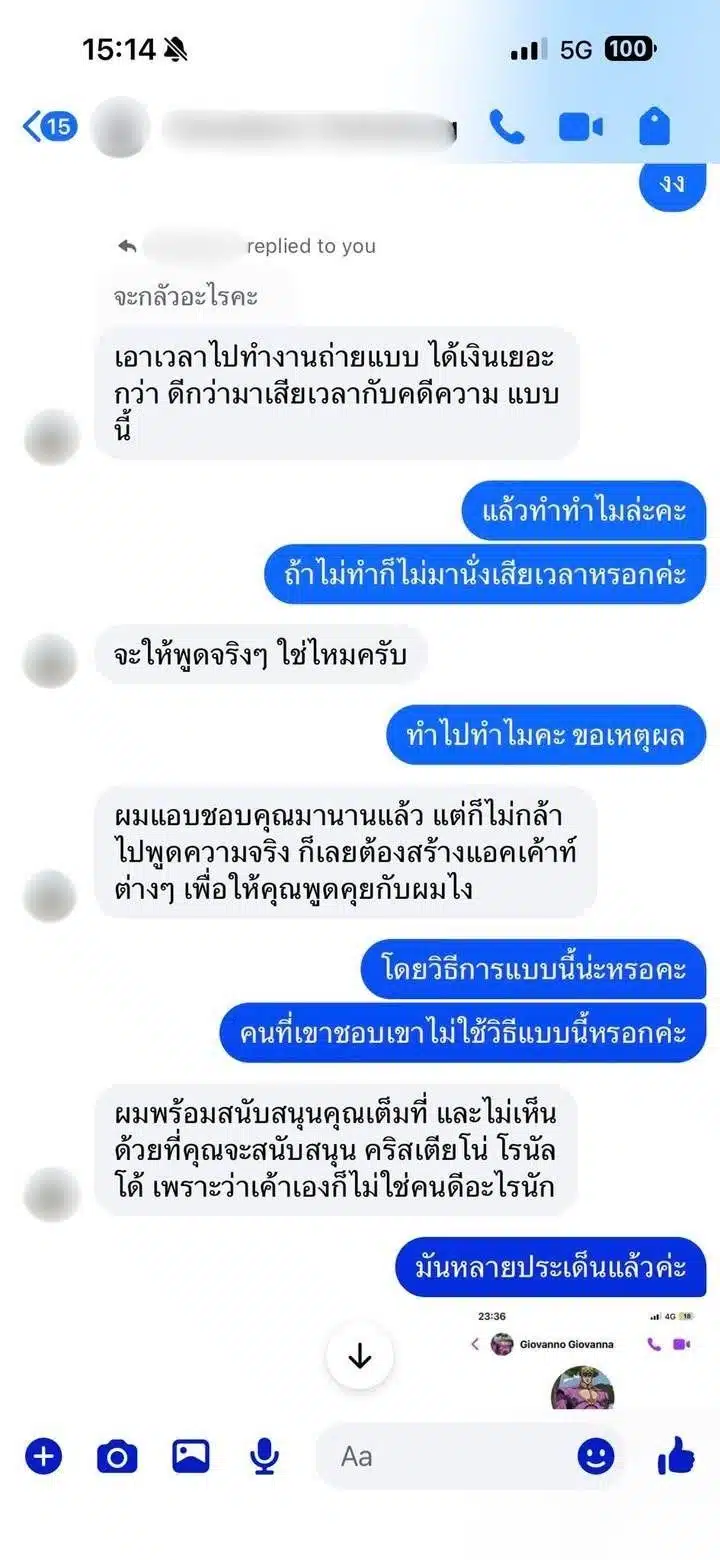 เค้าก็คงดูออกว่าหนูไม่ได้ชอบ ก็เลยเอาหนูไปลงในกลุ่มต่าง ๆ พวกแมนมินิสต์อะไรพวกนี้ค่ะ แล้วก็หนูทนไม่ไหว เลยไปแจ้งความ มันเลยขอโทษหนู มันบอกจะไม่ทำอีกแล้ว แต่มันก็กลับมาทำอีก