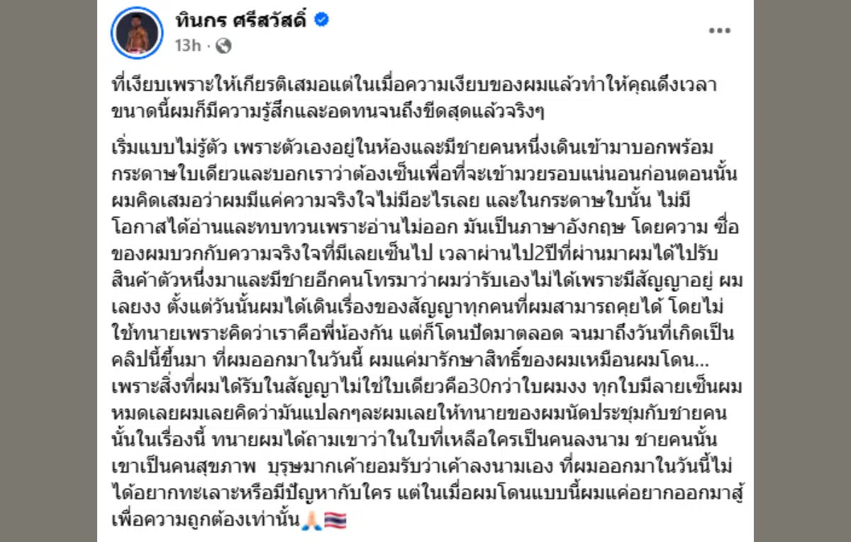 จากกรณี รถถัง จิตรเมืองนนท์ นักมวยไทยชื่อดัง โพสต์ร่ายยาวบนเฟซบุ๊กเกี่ยวกับเรื่องของการเซ็นสัญญาเมื่อ 2 ปีก่อน ที่ต่อมาจะทราบว่าตนเองถูกปลอมลายเซ็น ไปลงนามสัญญาอื่นอีกกว่า 30 ฉบับ ส่งผลให้ต้องเผชิญปัญหาในการรับผลประโยชน์ จู่ๆ มีการแจ้งว่า ไปรับงานนี้ไม่ได้เพราะมีสัญญาอยู่