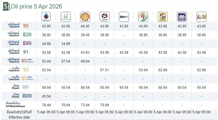 เช็คราคาน้ำมัน 5 เม.ย. หลังกบน. ลดเงินชดเชยกองทุนน้ำมัน ส่งผลให้น้ำมันดีเซลแตะ 50 บาท โดยมีผลแล้วตั้งแต่วันนี้ในเวลาตี 5
