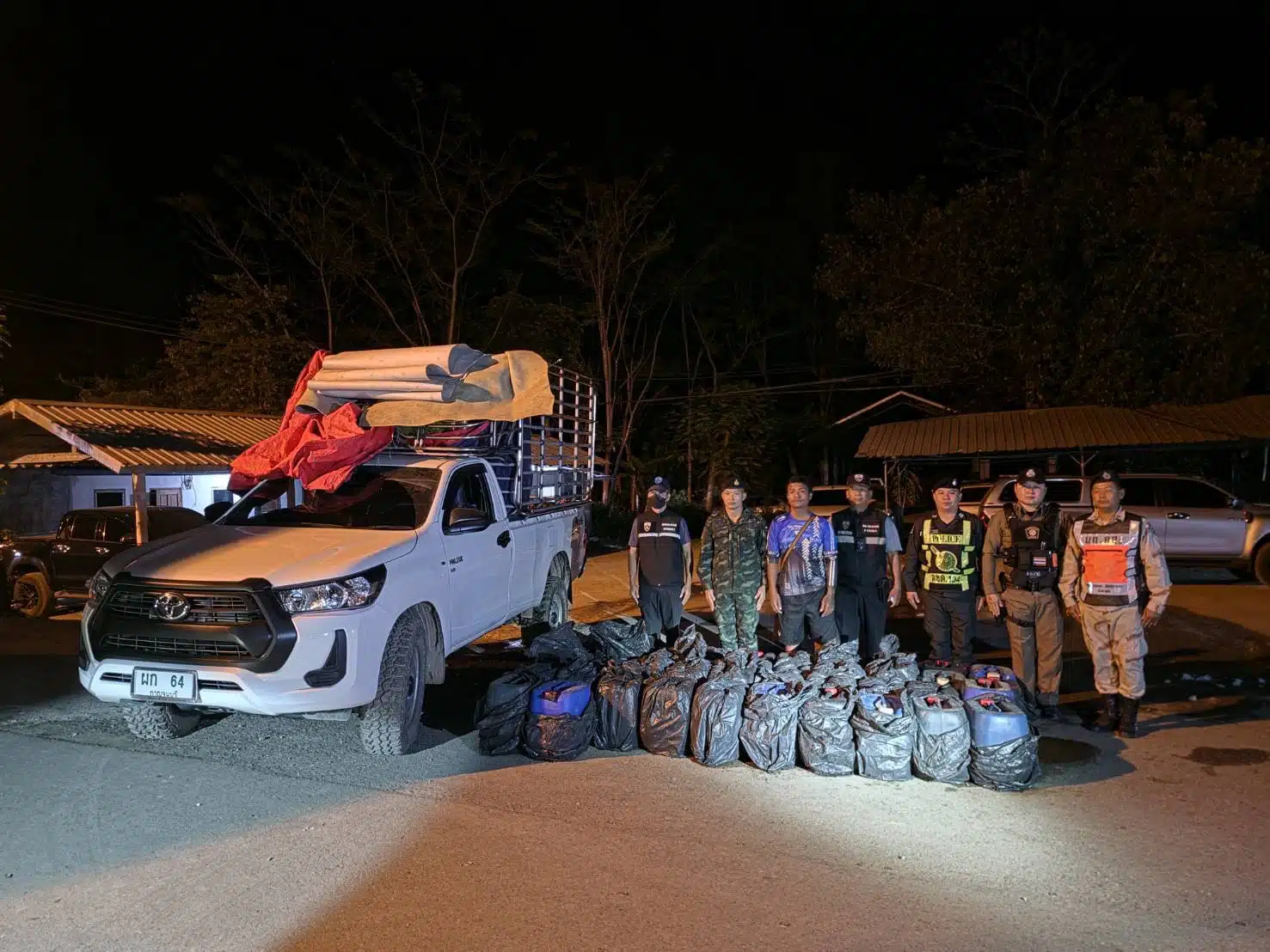 ทหารรวบ “กระบะตบตาซุกน้ำมัน” ใต้ถุงน้ำแข็ง ลอบขนขายเมียนมา
