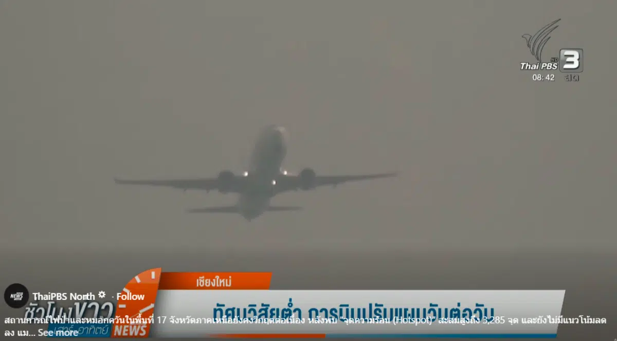 ขณะที่ไฟป่าที่โหมไหม้ส่งผลกระทบอย่างหนัก โดยตรงต่อตัวเมืองเชียงใหม่ โดยเฉพาะที่ท่าอากาศยานเชียงใหม่ซึ่งไทยพีบีเอสเผยว่า ทัศนวิสัยต่ำลงอย่างชัดเจน มองเห็นเครื่องบินลงจอดได้ยาก เจ้าหน้าที่ระบุว่า ระยะการมองเห็นลดลงเหลือเพียง 1,500-1,800 เมตรเท่านั้น จำเป็นต้องเปิดระบบนำร่องเต็มรูปแบบและใช้รถตรวจการวิ่งเช็กความปลอดภัยบนรันเวย์ ต้องประเมินสถานการณืวันต่อวัน