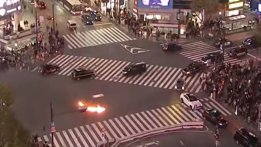 รวบศิลปินจุดไฟกลางถนน แยกชิบูย่ากลางดึก พร้อมทิ้งข้อความปริศนา