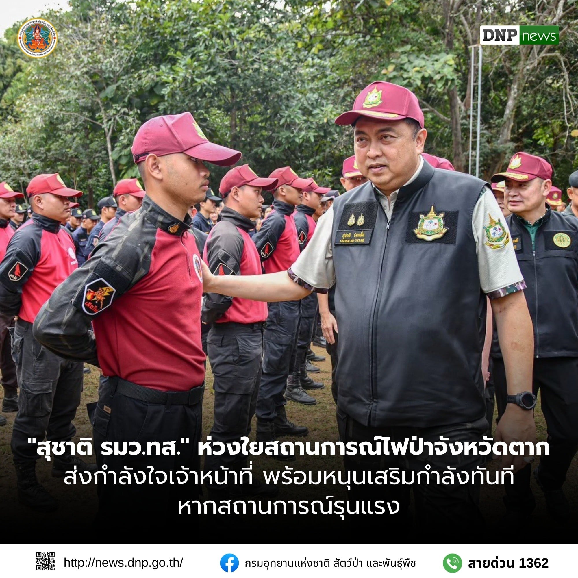 สุชาติ รมว.ทส.” ห่วงใยสถานการณ์ไฟป่าจังหวัดตาก ส่งกำลังใจเจ้าหน้าที่ พร้อมหนุนเสริมกำลังทันทีหากสถานการณ์รุนแรง