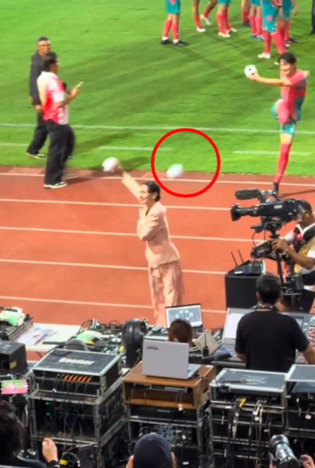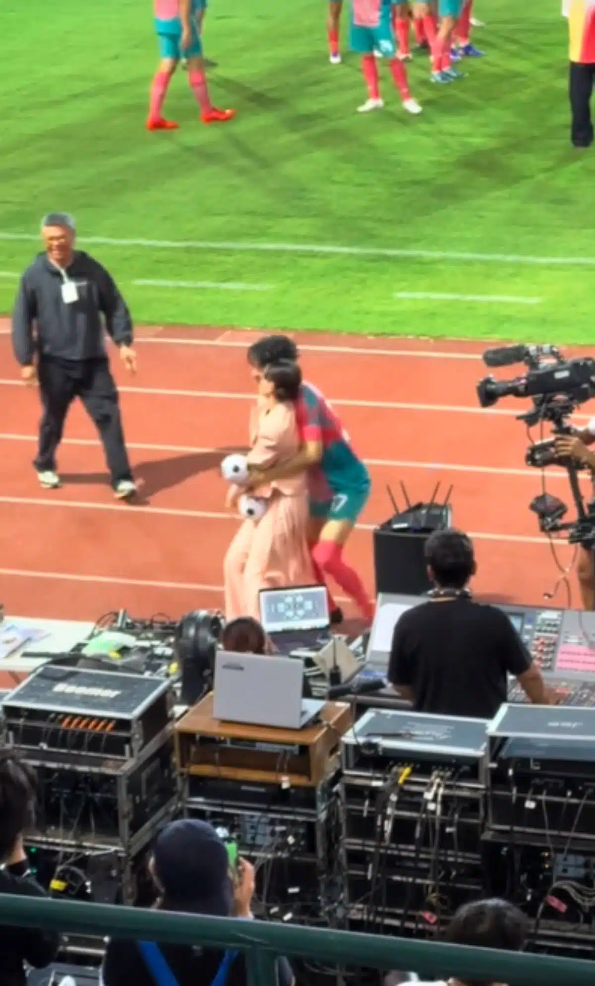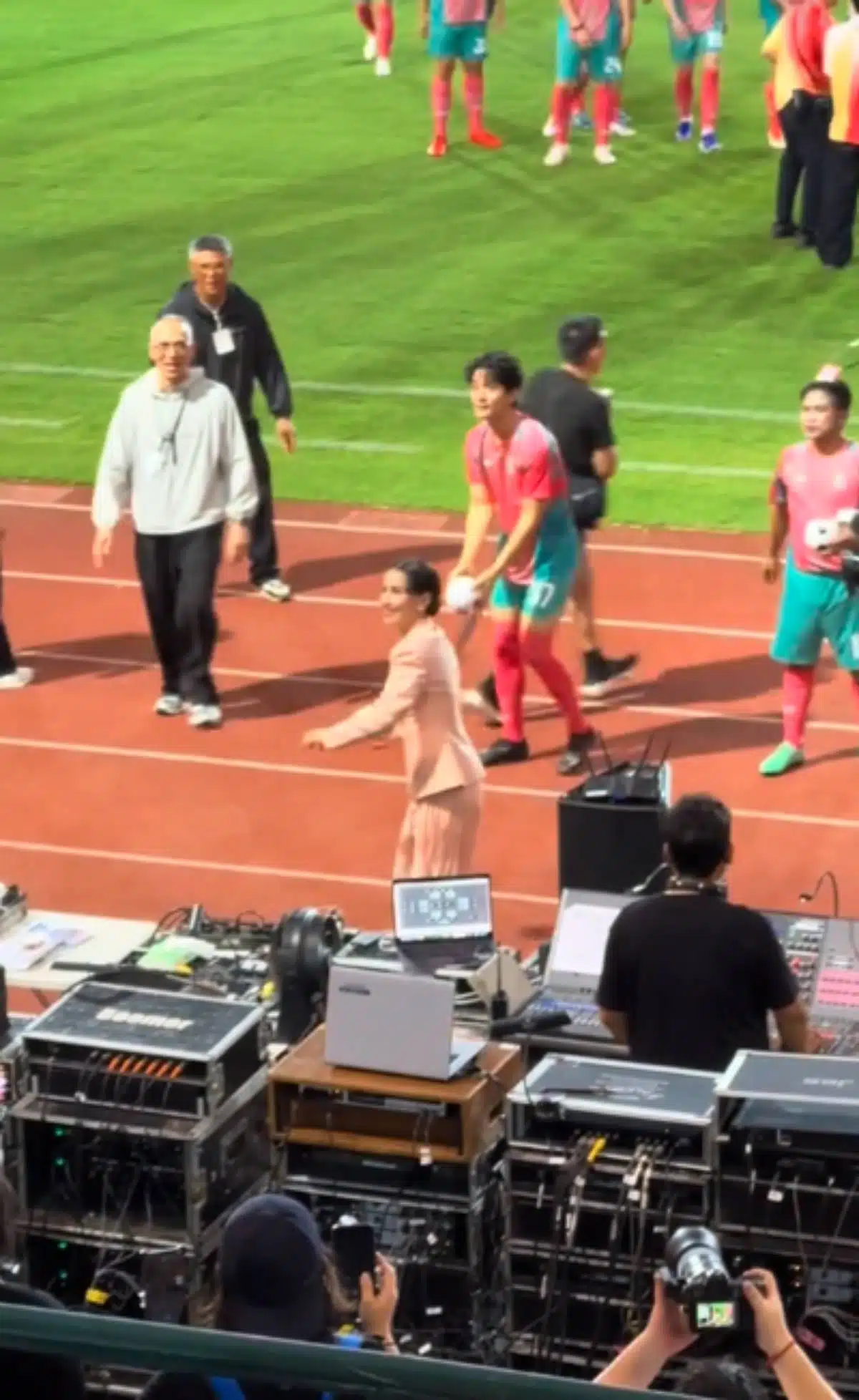 เหตุการณ์ดังกล่าวเกิดขึ้นในช่วงไฮไลต์ที่เหล่านักแสดงกำลังเดินรอบสนามเพื่อขอบคุณและแจกลูกฟุตบอลพร้อมลายเซ็นให้กับแฟนๆ บนอัฒจันทร์ บรรยากาศเต็มไปด้วยความชื่นมื่นและเสียงกรี๊ดสนั่น แต่แล้วจู่ๆ กลับเกิดจังหวะช็อกโลก เมื่อมีนักแสดงหนุ่มรายหนึ่งพยายามจะเตะฟุตบอลส่งให้แฟนคลับ แต่กลับผิดพลาด ลูกบอลเจ้ากรรมจึงพุ่งตรงเข้าใส่ศีรษะของ แอน ทองประสม เข้าอย่างจัง ! ทำเอาทีมงานและนักแสดงที่อยู่ใกล้เคียงถึงกับหน้าถอดสี รีบพุ่งตัวเข้าไปดูอาการของนางเอกสาวทันที