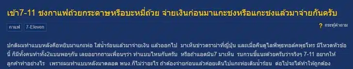 ประเด็นมารยาทการใช้บริการร้านสะดวกซื้อถูกหยิบยกมาวิพากษ์วิจารณ์อีกครั้ง เมื่อมีการตั้งคำถามว่า การซื้อบะหมี่กึ่งสำเร็จรูปชนิดถ้วยหรือกาแฟแบบชงเอง ควร “ชำระเงินให้เสร็จ” หรือ “แกะชงก่อนแล้วค่อยไปจ่าย” ซึ่งเรื่องนี้มีความเห็นแตกออกเป็น 2 ฝ่าย ทั้งกลุ่มที่เน้นความสะดวกแบบอะลุ่มอล่วย และกลุ่มที่ยึดถือหลักสากลว่า สินค้าที่ยังไม่ชำระเงินไม่ควรถูกแกะใช้งาน