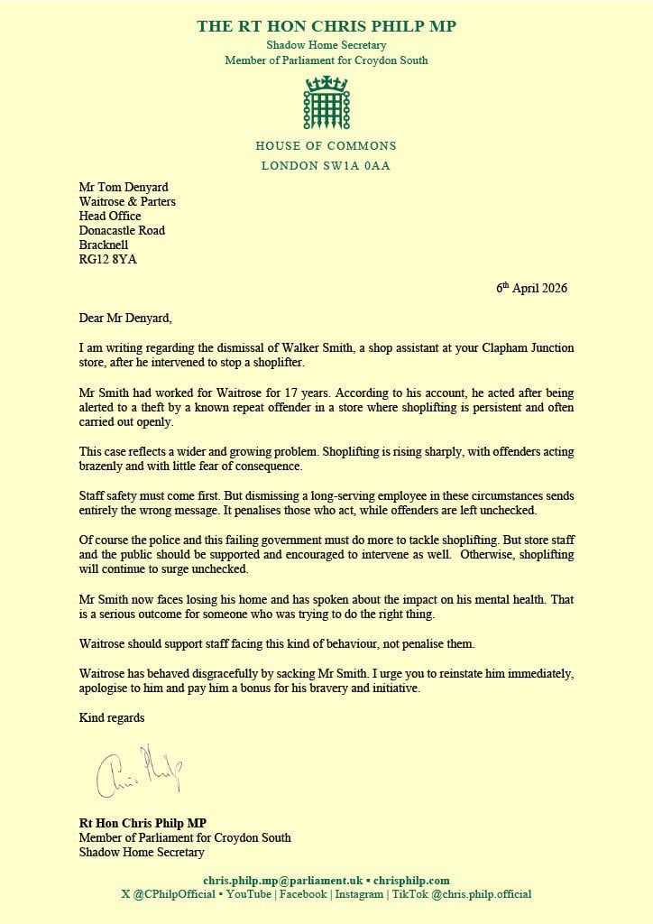 ฟิลป์วิจารณ์การตัดสินใจของ Waitrose อย่างรุนแรง ว่าบริษัทน่าอับอาย การไล่พนักงานที่ทุ่มเททำงานมานานออกในสถานการณ์เช่นนี้ถือเป็นการส่งสัญญาณที่ผิดพลาด องค์กรกำลังลงโทษคนที่พยายามทำสิ่งที่ถูกต้อง ปล่อยให้ผู้กระทำผิดลอยนวล