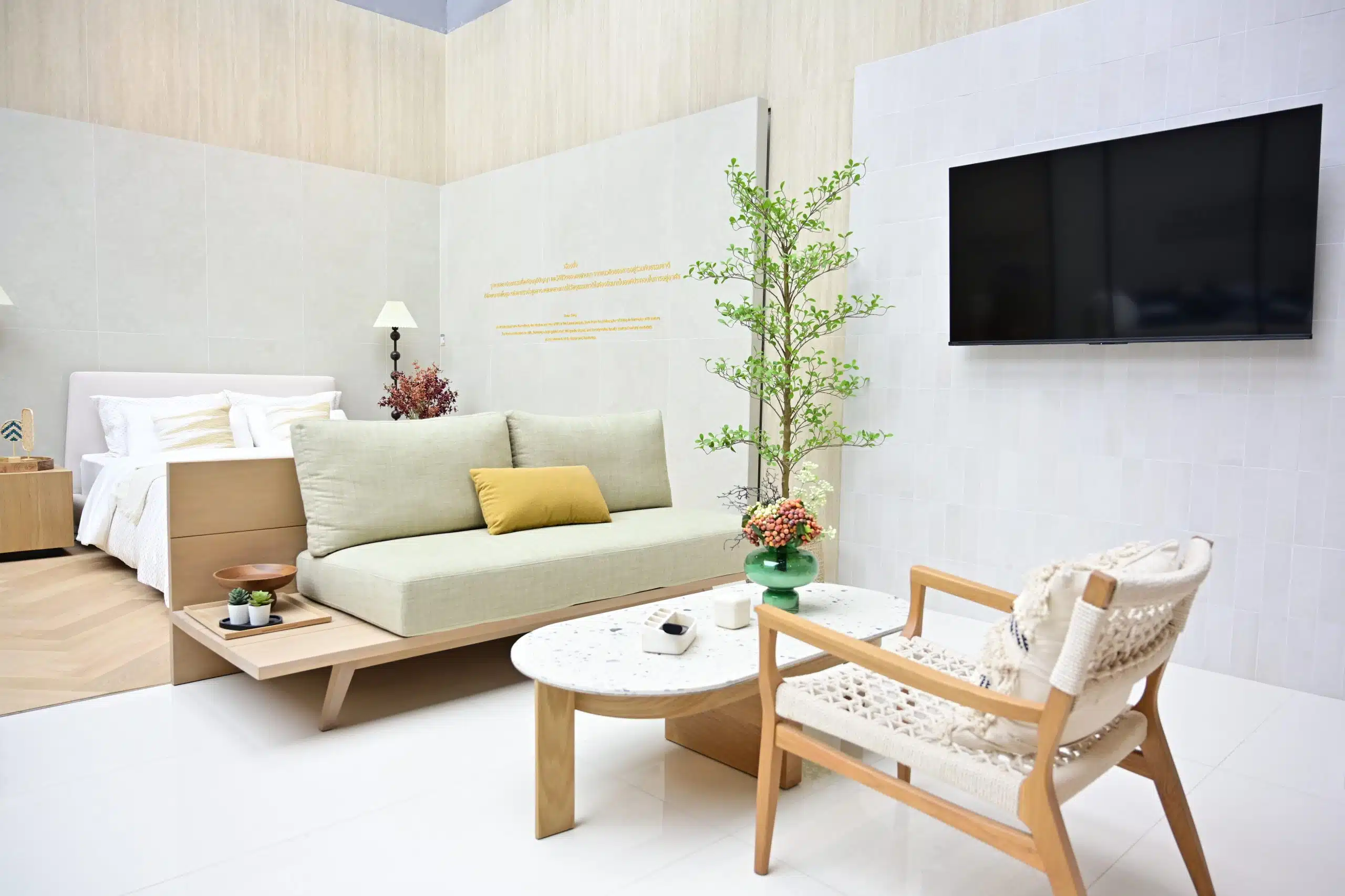 โชว์รูมแห่งนี้ไม่ได้เป็นเพียงพื้นที่ค้าปลีกวัสดุตกแต่ง แต่คือการสร้างมาตรฐานใหม่ของวงการ ภายใต้แนวคิด “Museum-like” ที่ผสานการเล่าเรื่อง แนวคิด แรงบันดาลใจ และการให้ความรู้ด้านกระเบื้องผ่านการจัดแสดงสินค้าในพื้นที่ต่างๆ อย่างมีมิติ โดยตัวอาคารออกแบบด้วยคอนเซปต์สถาปัตยกรรมพื้นถิ่น (Vernacular Architecture) ที่ดึงอัตลักษณ์สำคัญของเมืองเชียงใหม่อย่าง “ประตูท่าแพ” และ “เฮือนตั้ง” รูปแบบที่อยู่อาศัยดั้งเดิมของชาวล้านนา มาผสมผสานกับความร่วมสมัย (Contemporary) ได้อย่างลงตัว