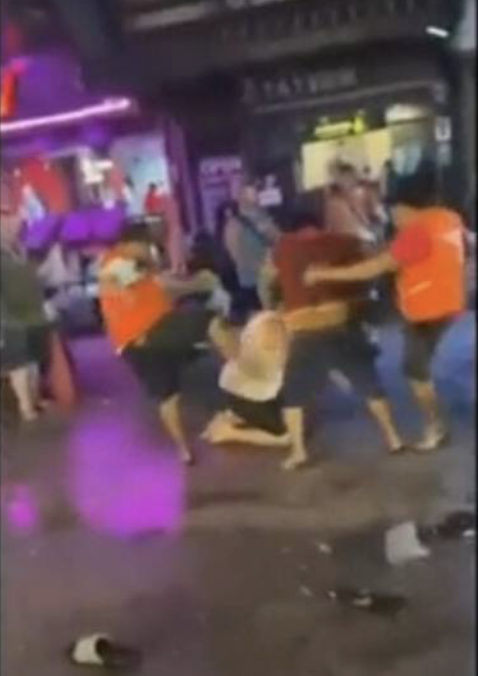 จังหวะนั้นมีเพื่อนชาวต่างชาติอีกคนพยายามเข้าไปห้ามปรามเพื่อช่วยเหลือคนที่ล้มลง กลุ่มวินมอเตอร์ไซค์จึงหันไปรุมทำร้ายชาวต่างชาติคนที่เข้ามาห้าม ท่ามกลางสายตาผู้คนที่สัญจรไปมาบริเวณนั้น