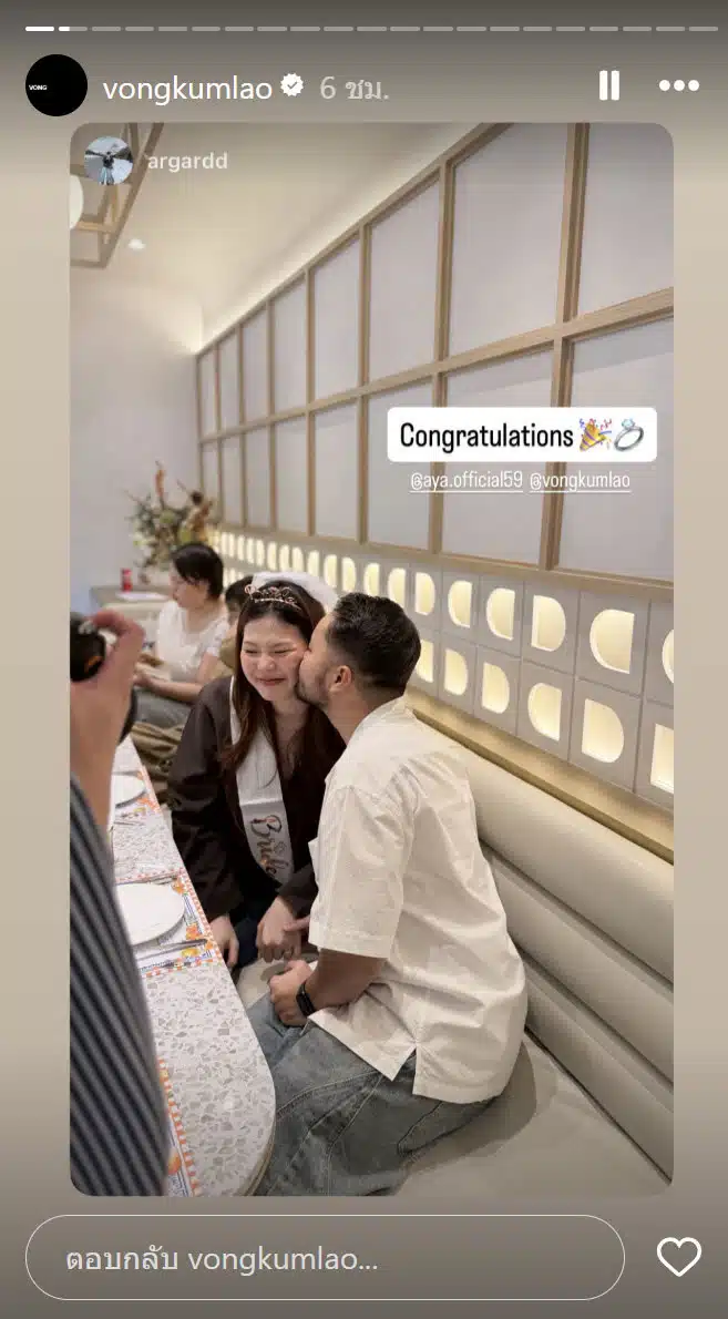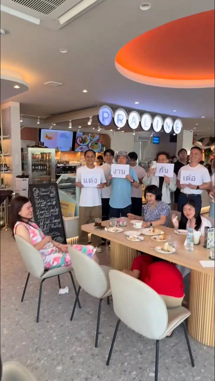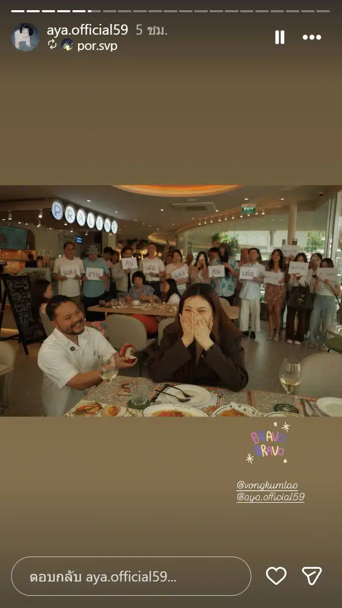 เซอร์ไพรส์ครั้งนี้ทำเอาว่าที่เจ้าสาวดีใจจนกลั้นน้ำตาไว้ไม่อยู่ เธอตอบตกลงท่ามกลางเสียงเชียร์ของทุกคน ครอบครัวนำคลิปวิดีโอความน่ารักนี้มาเผยแพร่บนโลกออนไลน์ แฟนคลับรวมถึงคนใกล้ชิดพากันเข้ามาแสดงความยินดีอย่างล้นหลาม แฟนคลับหลายคนชื่นชมว่าเป็นการขอแต่งงานที่เรียบง่ายแต่มีความหมายลึกซึ้ง ถือเป็นข่าวดีต้อนรับเทศกาลปีใหม่ไทยที่น่าประทับใจอย่างแท้จริง