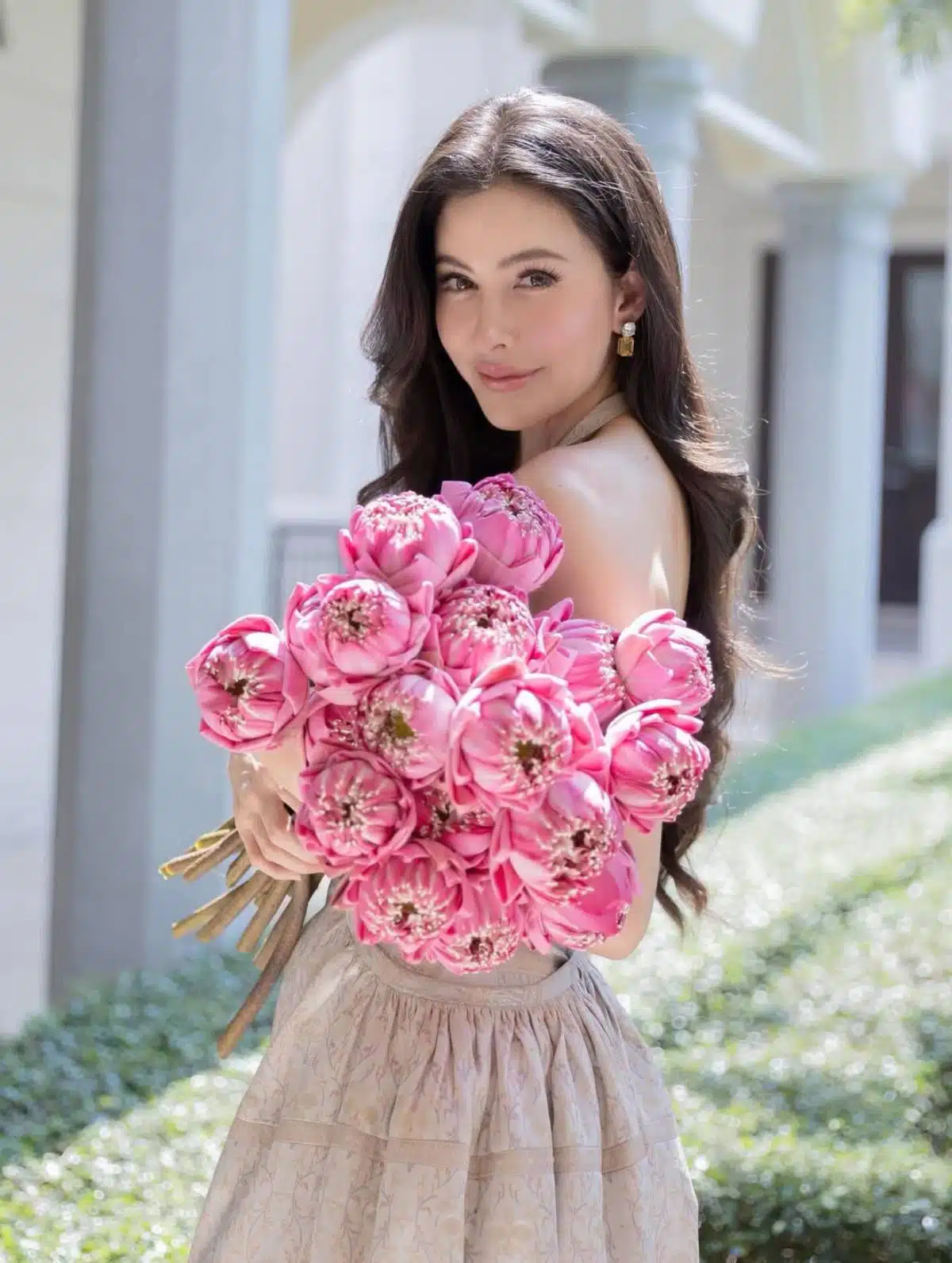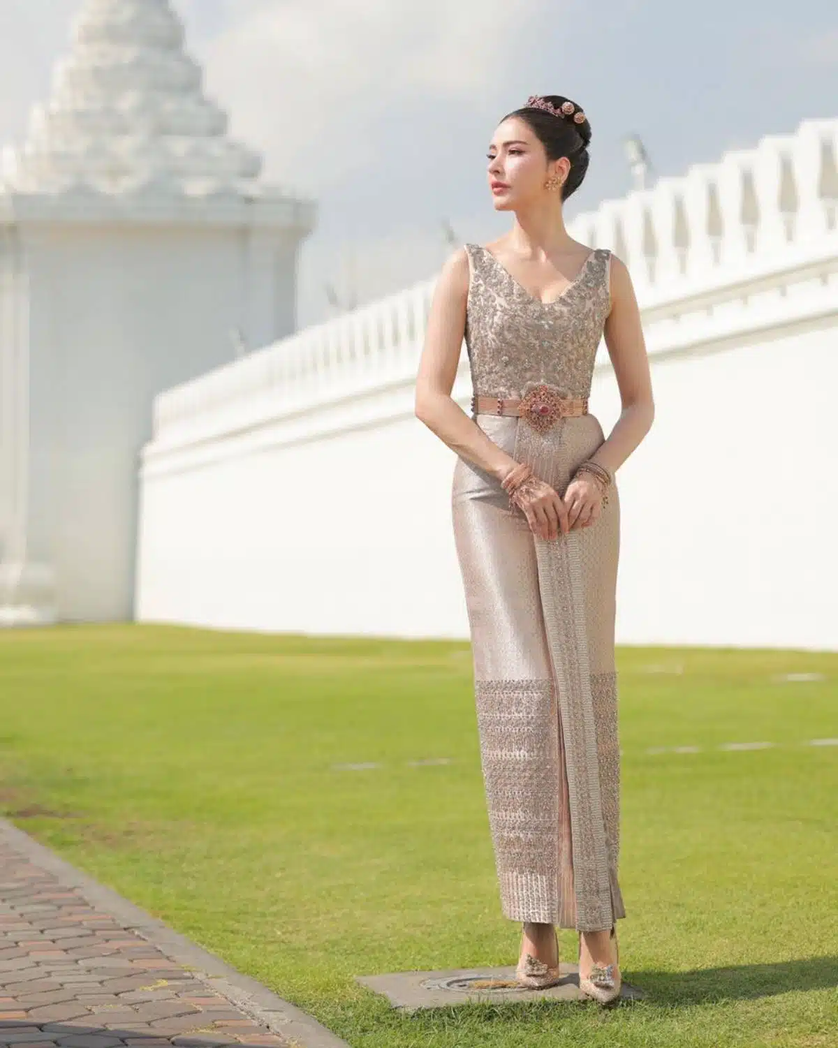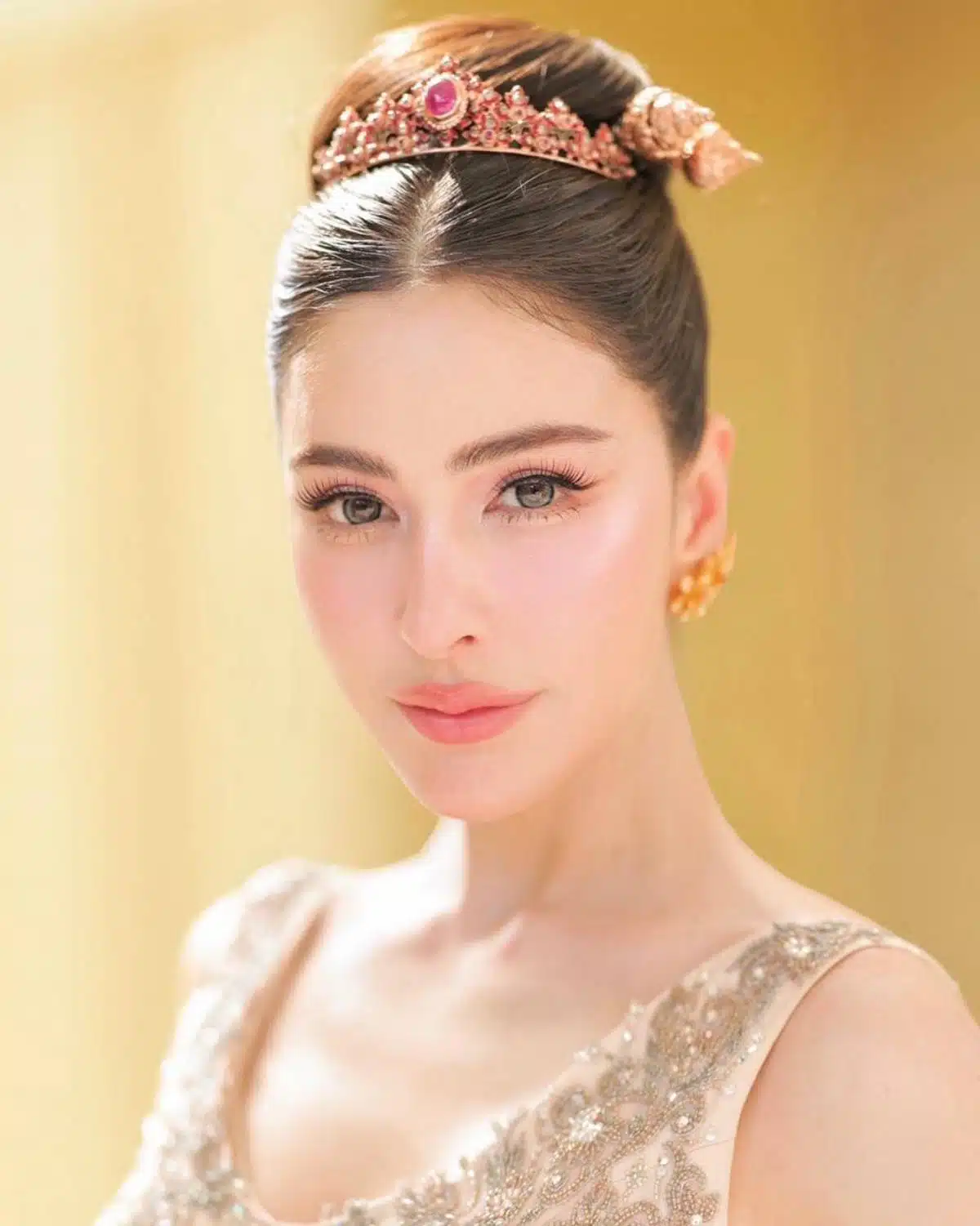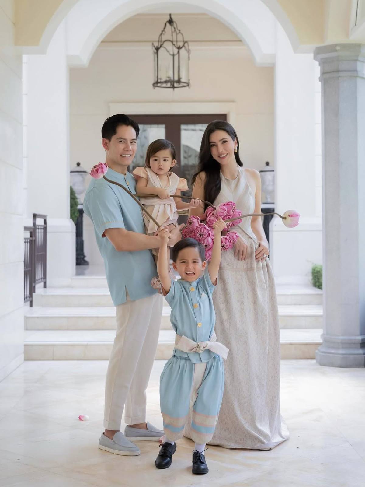 นางเอกสาว ศรีริต้า เจนเซ่น ณรงค์เดช สวมชุดไทยดุสิตสีโรสโกลด์ปักคริสตัล มูลค่าเกือบ 3 แสนบาท สาดออร่าต้อนรับปีใหม่ไทย พร้อมอัปเดตชีวิตครอบครัวสุดอบอุ่น