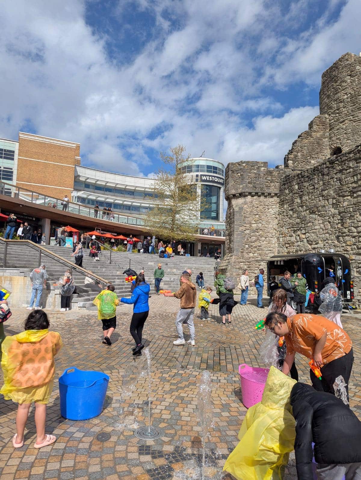 ก่อนหน้านี้ เมื่อวันที่ 11 เมษายน เฟซบุ๊กแฟนเพจ Westquay (Westquay Shopping Centre) ห้างสรรพสินค้าระดับพรีเมียมซึ่งตั้งอยู่ใจกลางเมืองเซาแธมป์ตันของอังกฤษ โพสต์ภาพบรรยากาศของเด็กและวัยรุ่นจำนวนมากออกมาถือปืนฉีดน้ำและถังใบใหญ่ซึ่งเตรียมมาสาดน้ำกันอย่างสนุกสนาน