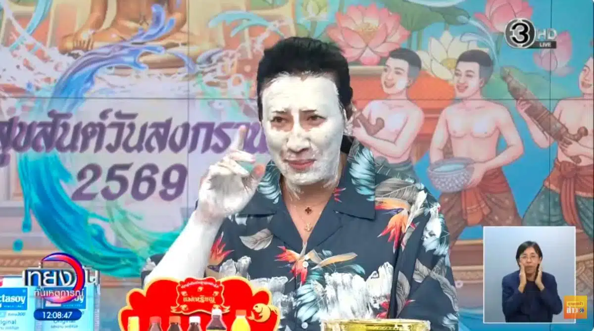 หมวย อริสรา นำทีมงานเที่ยงวันทันเหตุการณ์รุมละเลงแป้งพิธีกรคนดังรับสงกรานต์ เจ้าตัวแซวเจ็บผู้ใหญ่แฟนลิเวอร์พูลสั่งลุย ทำช้ำใจเหมือนทีมรักโดนบุกสอยคาบ้าน
