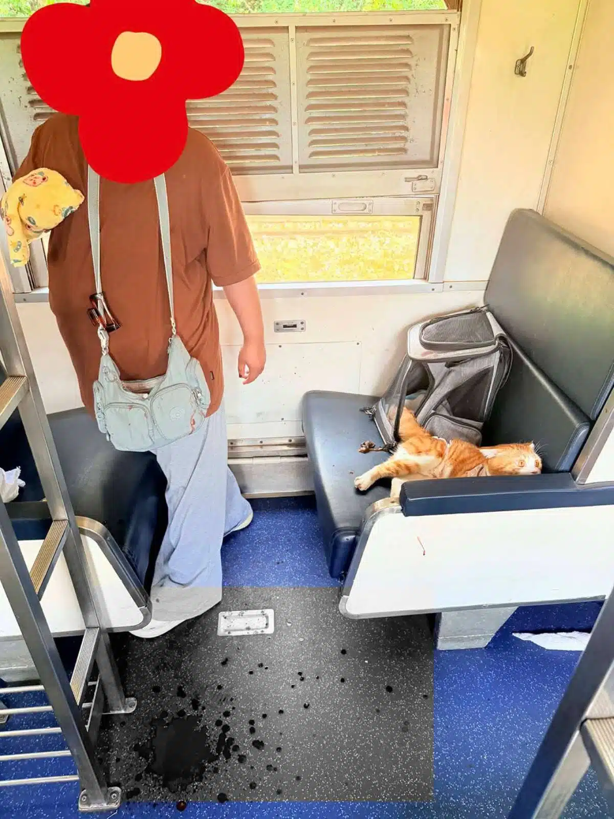 เนื้อหาจากเฟซบุ๊กแฟนเพจ “เรารักด่านตรวจ” ระบุว่า “แมวแรงเยอะมาก จนท.ต้องเอาผ้าปูเตียงคลุมแล้วตะครุบถึง 3 คน ใช้เวลา 20 นาทีถึงเอาอยู่ คาดว่าเนื่องจากอากาศร้อนจัดและทำให้สัตว์เลี้ยงคลั่ง แมวคลั่งกัดเจ้าของจนเลือดไหล ขบวนรถหยุดรถเพื่อช่วยกันจับแมวของผู้โดยสารบนรถไฟ ส่งผลให้ขบวนรถล่าช้า”