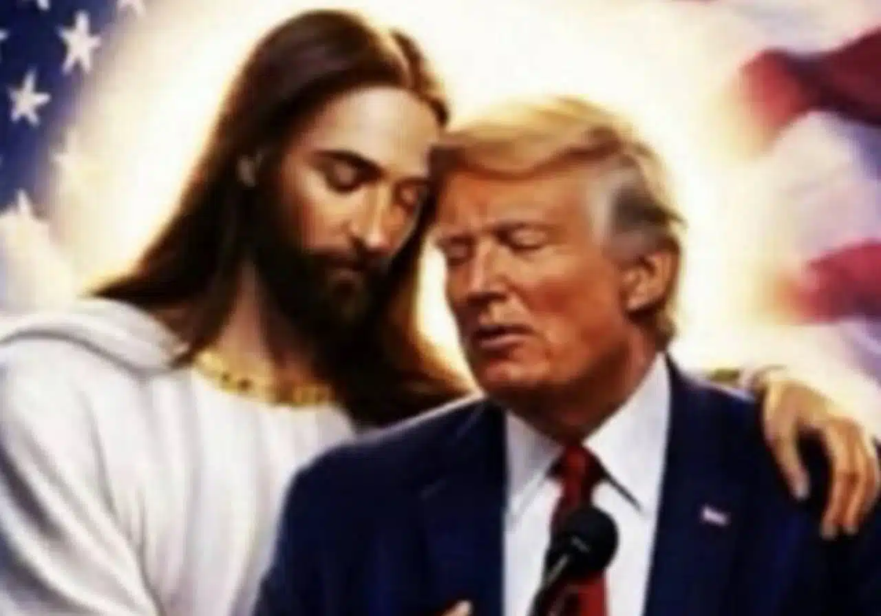 เมื่อวันที่ 16 เมษายน สำนักข่าว อินดีเพนเด้นท์ รายงานว่า นายโดนัลด์ ทรัมป์ ได้โพสต์ภาพลงทรูธโซเชียล เป็นภาพที่ถูกผลิตด้วยปัญญาประดิษฐ์ (AI) เป็นภาพของพระเยซูคริสต์โอบกอดนายทรัมป์ ข้างหลังมีธงชาติสหรัฐอเมริกา พร้อมเขียนข้อความกำกับว่า “พวกหัวรุนแรงฝ่ายซ้ายอาจจะไม่ชอบสิ่งนี้ แต่ผมว่ามันค่อนข้างดีทีเดียว”