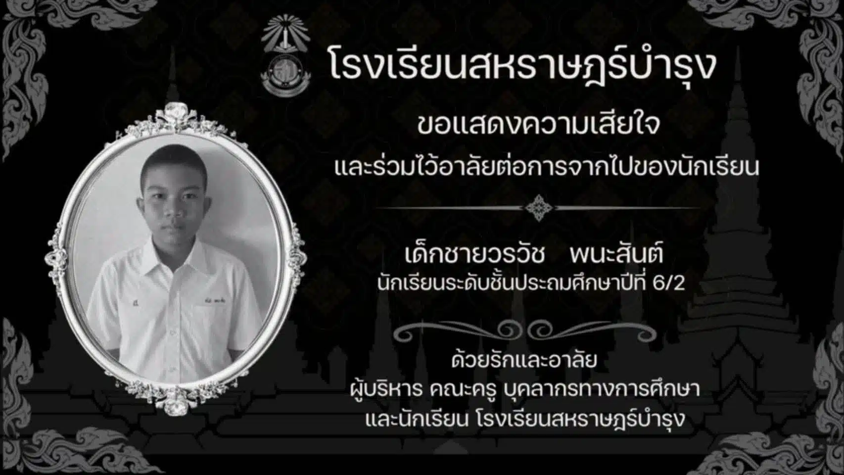 บรรยากาศที่โรงเรียนสหราษฎร์บำรุง และโรงเรียนมัธยมป่ากลาง เต็มไปด้วยความโศกเศร้า หลังมีการเปิดเผยรายชื่อนักเรียนที่เสียชีวิตจากเหตุการณ์นี้ถึง 4 ราย ซึ่งส่วนใหญ่เป็นพี่น้องกันในตระกูล “พนะสันต์” ได้แก่