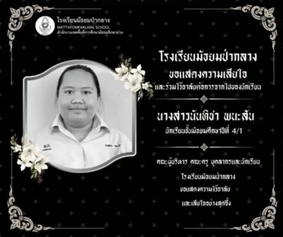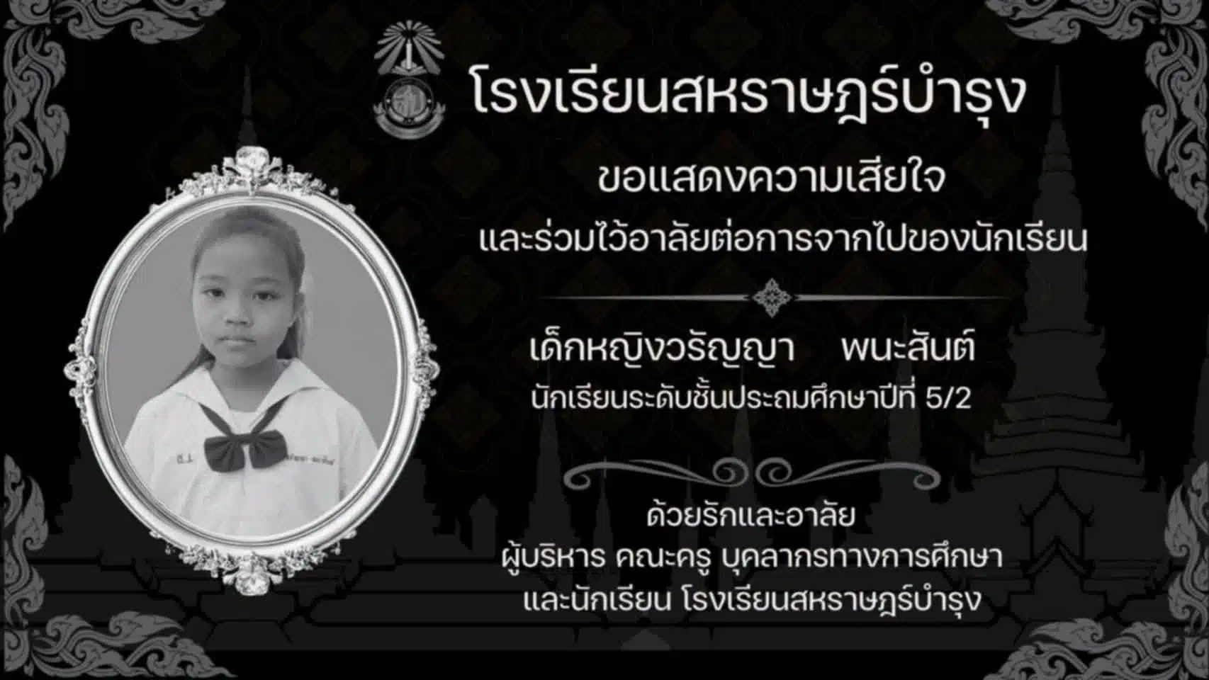 ทางโรงเรียนได้โพสต์ข้อความไว้อาลัยอย่างสุดซึ้งต่อการจากไปของกลุ่มเด็กนักเรียนที่เป็นอนาคตของชาติ ท่ามกลางเสียงสะอื้นของคณะครูและเพื่อนนักเรียนที่ยากจะทำใจ