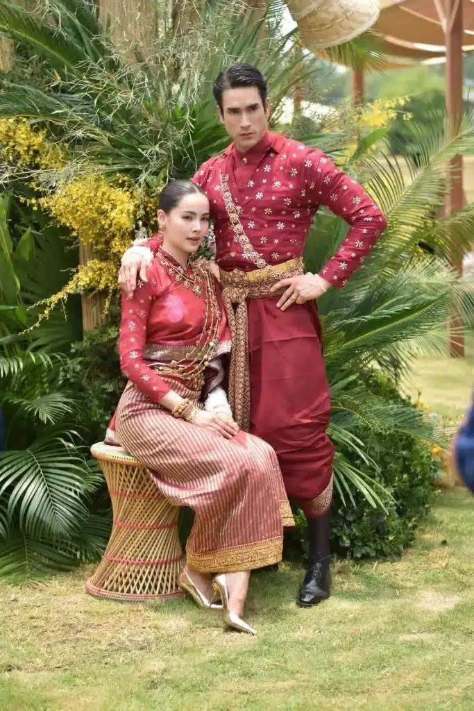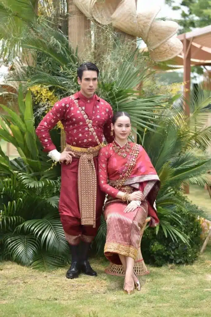 ชุดของเจ้าบ่าวเจ้าสาวมีความหมายลึกซึ้ง อาจารย์วีรธรรม ตระกูลเงินไทย บรมครูด้านผ้าไทยเป็นผู้ทำชุดพื้นเมืองอีสานให้ทั้งคู่ โทนสีแดงของชุดคือสีแดงครั่งซึ่งเกิดจากการย้อมรังครั่ง
