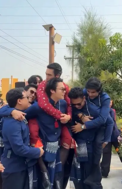 ไฮไลต์สำคัญคือการทำหน้าที่ของ หงส์ น้องสาวของณเดชน์ กับ กานต์ น้องชายของณเดชน์ หงส์ปรากฏตัวในชุดไทยสีชมพูหวานละมุน รับหน้าที่ใช้กระบวยตักน้ำล้างเท้าให้พี่ชาย จากนั้นใช้ผ้าเช็ดจนสะอาดก่อนเจ้าบ่าวเดินถือพานขันหมากขึ้นเรือน พิธีนี้ทำตามประเพณีอีสานโบราณเพื่อความเป็นสิริมงคลให้ชีวิตคู่มั่นคงหวานชื่น