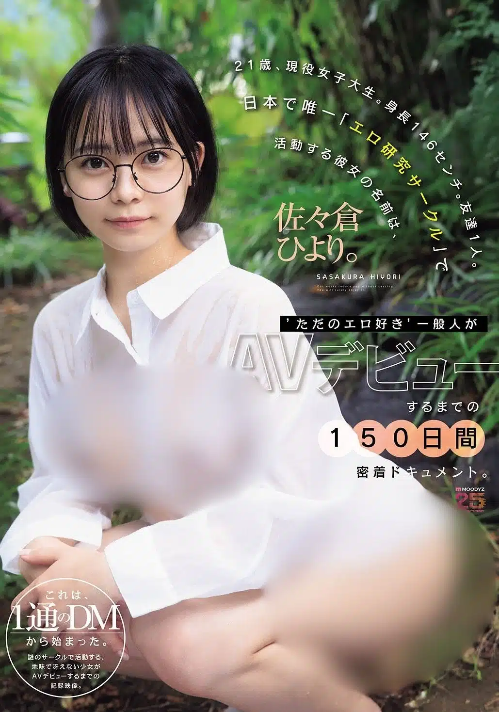 ค่ายหนัง Moodyz สร้างจุดขายสุดแหวกแนวด้วยการเปิดตัว ซาซากุระ ฮิโยริ ในรูปแบบภาพยนตร์สารคดีความยาว 150 วัน ทีมงานได้ติดตามถ่ายทำชีวิตประจำวันเพื่อนำเสนอเส้นทางการเปลี่ยนผ่าน จากชีวิตนักศึกษาธรรมดาก้าวเข้าสู่วงการนักแสดงอย่างเต็มตัว ความทุ่มเทของทีมงานรวมถึงการเข้าไปถ่ายทำเจาะลึกถึงภายในชมรมที่ ซาซากุระ ฮิโยริ สังกัดอยู่ เพื่อถ่ายทอดเรื่องราวให้สมจริงตรงตามประวัติ