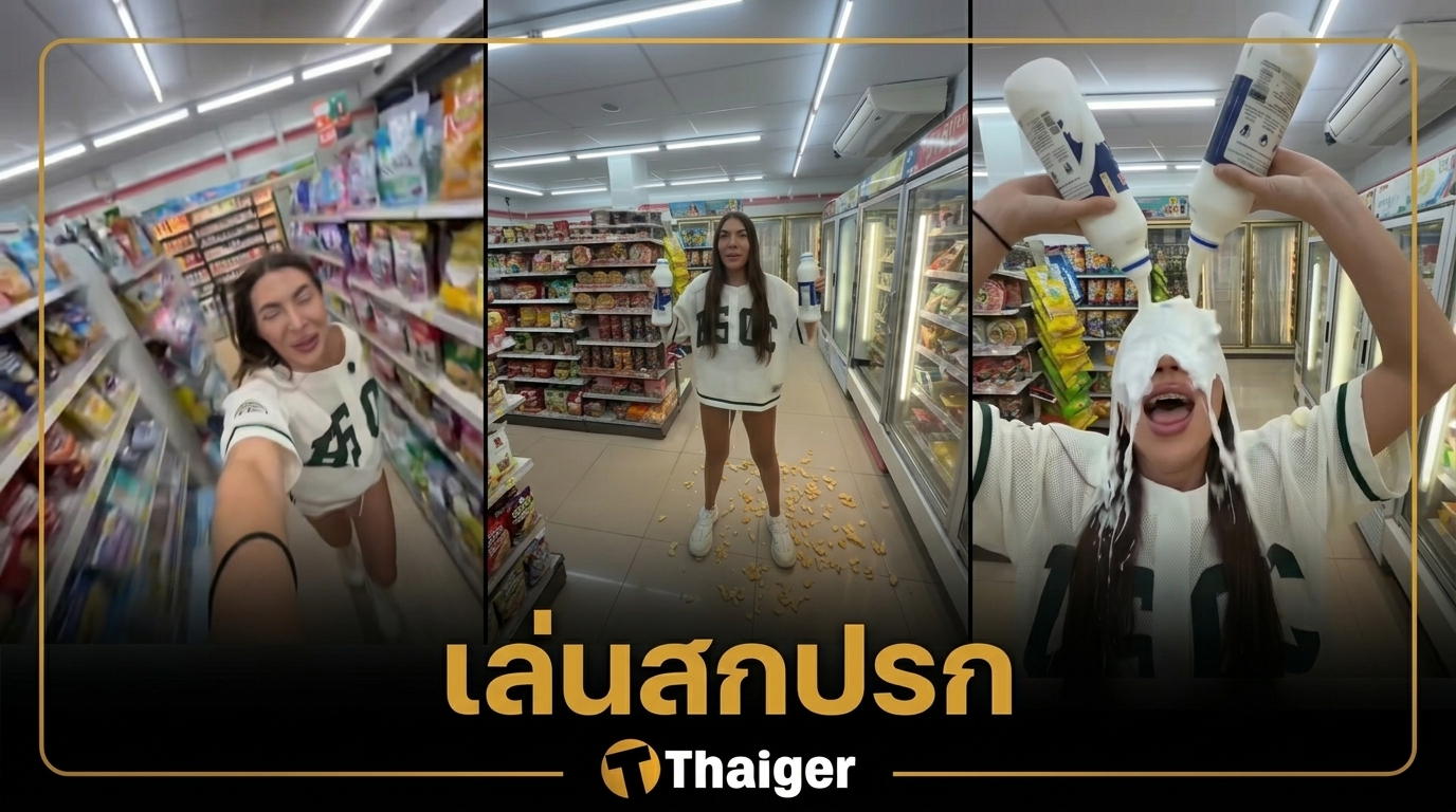 คลิปเสื่อม ฝรั่งรัสเซีย ราดนมกลางร้านสะดวกซื้อ สุดสกปรก ไม่เกรงกลัวกฎหมายไทย