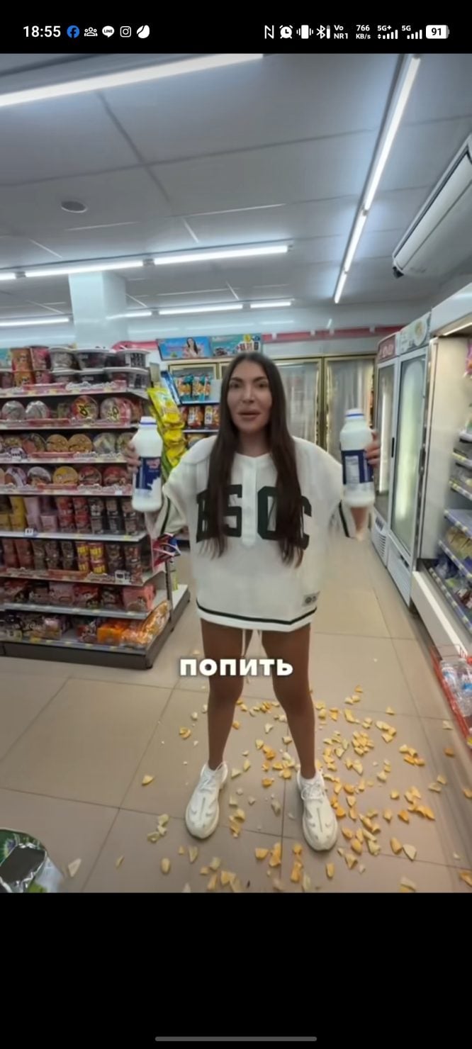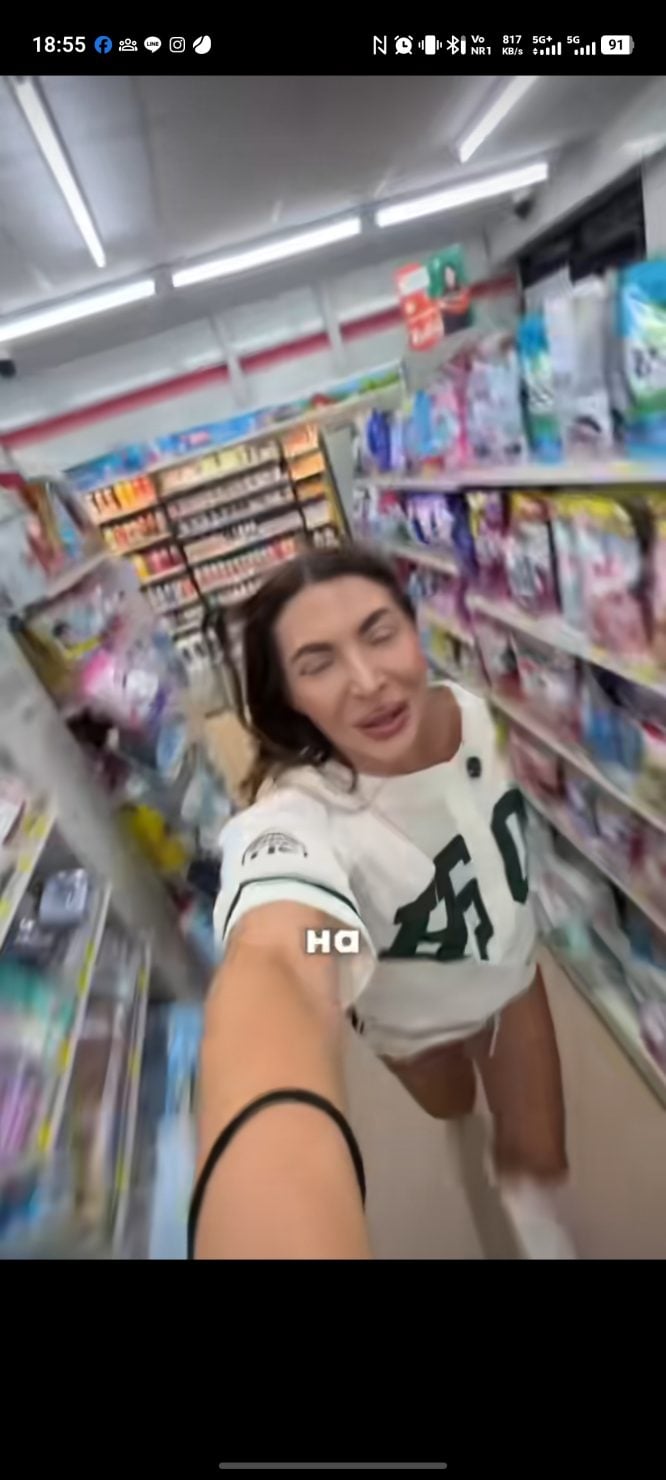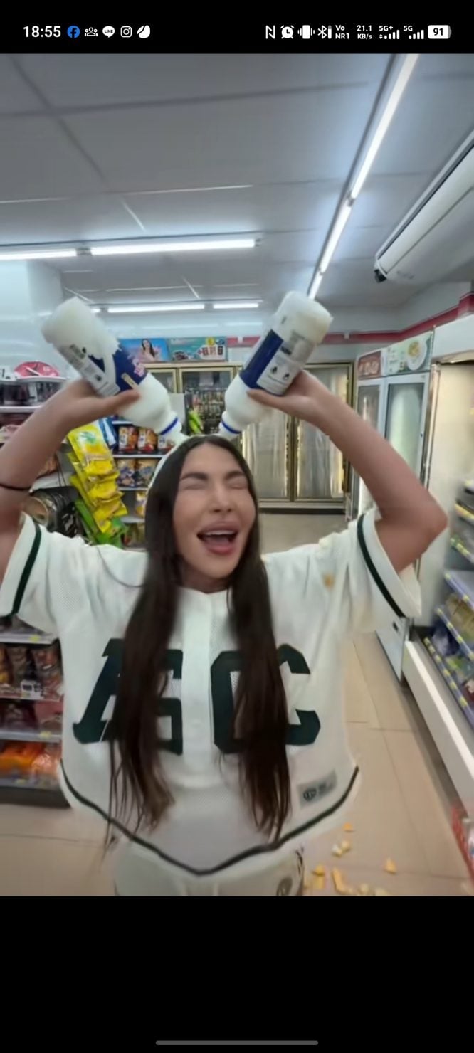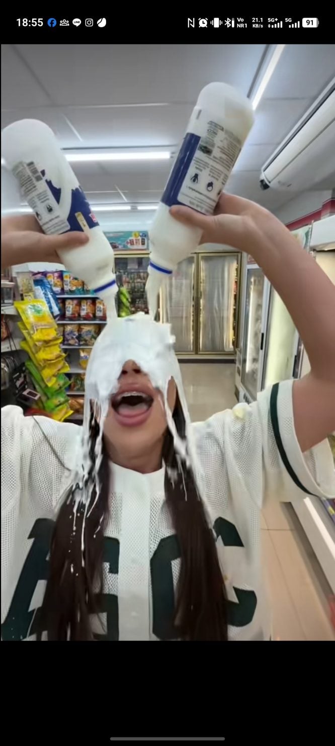 ในคลิปปรากฏภาพหญิงคนดังกล่าวเดินเข้าไปในร้านสะดวกซื้อ หยิบขนมขบเคี้ยวจากชั้นวางมาเทลงบนพื้นร้าน ก่อนจะหยิบนมสดสองขวดใหญ่เปิดฝาแล้วราดลงบนศีรษะของตัวเองจนเปียกชุ่ม นมที่ราดลงมาไหลนองเต็มพื้นและกระจายไปทั่วบริเวณชั้นวางสินค้า สร้างความสกปรกและความเสียหายให้กับพื้นที่ภายในร้านอย่างมาก