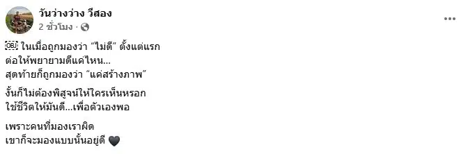 ต่อมา เบิร์ด วันว่างๆ ได้ไปปรากฏตัวที่ฮ่องกง พร้อมกับโพสต์ข้อความว่า “ในเมื่อถูกมองว่า “ไม่ดี” ตั้งแต่แรก ต่อให้พยายามดีแค่ไหน… สุดท้ายก็ถูกมองว่า “แค่สร้างภาพ” งั้นก็ไม่ต้องพิสูจน์ให้ใครเห็นหรอก ใช้ชีวิตให้มันดี…เพื่อตัวเองพอ เพราะคนที่มองเราผิด เขาก็จะมองแบบนั้นอยู่ดี”