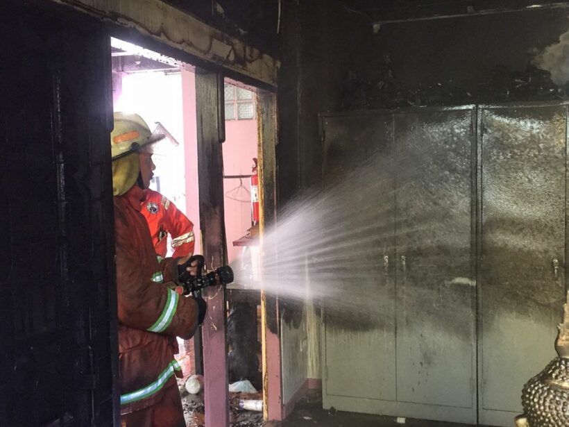 เกิดเพลิงไหม้ห้องพระของหอพักฯ จนท.ดับเพลิงทต.รัษฏา เร่งสกัดได้ทัน เคราะห์ดีไม่มีผู้ได้รับบาดเจ็บหรือเสียชีวิต คาดไฟฟ้าลัดวงจรหลังเปิดแอร์ทิ้งไว้ แต่พระบูชาหลวงพ่อแช่มไฟไม่ไหม้ ส่วนทรัพย์สินอยู่ภายในห้องได้รับความเสียหาย