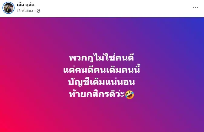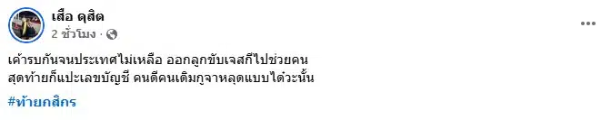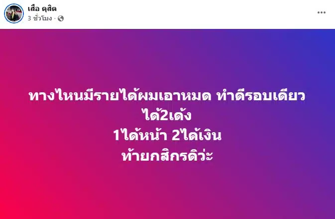 “เสือ ดุสิต” โพสต์รัว ฟาดคนดังหิวแสง พาใครไปแจ้งความก็ไม่รู้ หวังแต่เงินบริจาค