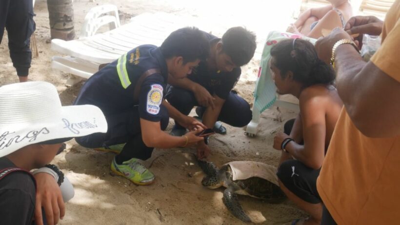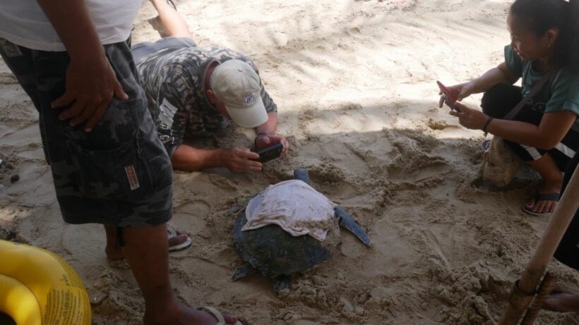 เต่าทะเลโดนคลื่นซัดขึ้นมาเกยตื้นหาดกมลา รับมรสุมแรกของปี