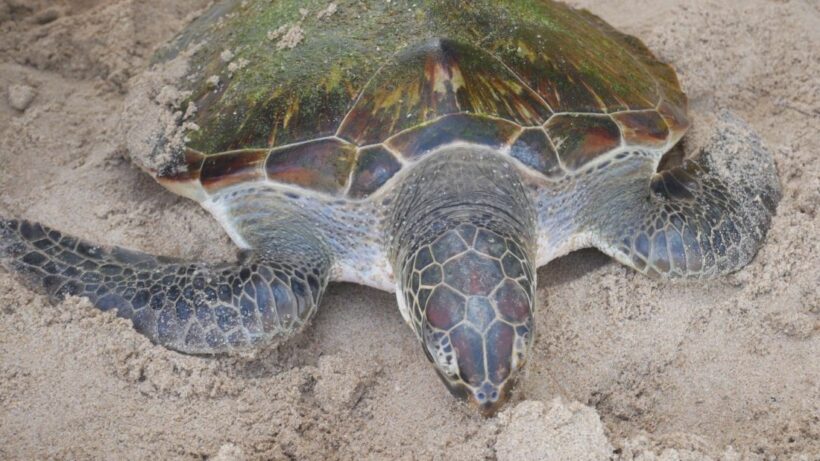 เต่าทะเลโดนคลื่นซัดขึ้นมาเกยตื้นหาดกมลา รับมรสุมแรกของปี