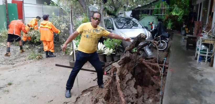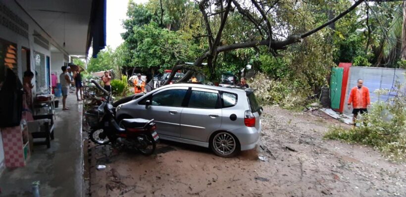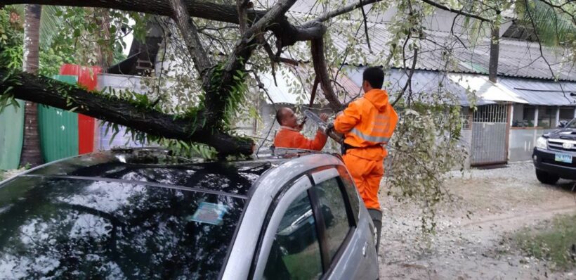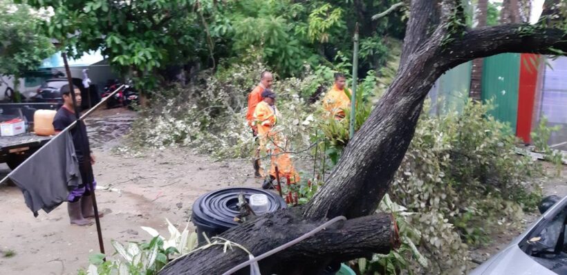 ภูเก็ตฝนตกหนักตลอดทั้งคืนทำให้ดินอุ้มน้ำ ต้นพุทราขนาดใหญ่ล้มทับรถยนต์ที่จอดหน้าบ้านเช่าได้รับความเสียหาย 1 คัน