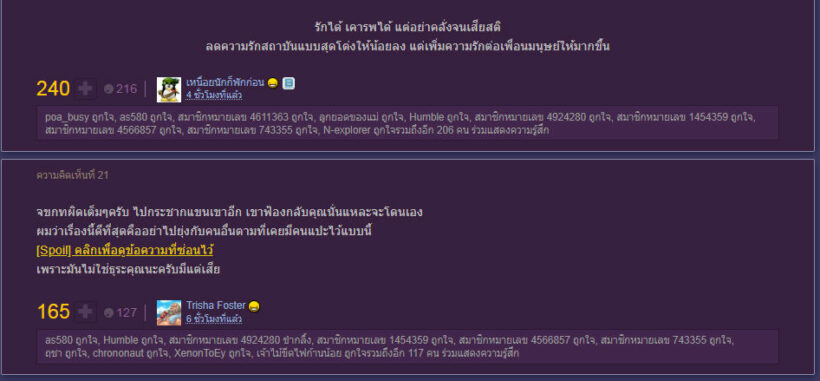 คืบหน้าล่าสุด ในเว็บไซต์พันทิปห้องเฉลิมไทย ผู้ใช้รายหนึ่งซึ่งอ้างว่าเป็นชายคู่กรณีพิพาทได้ชี้แจงเหตุทางมุมมองฝั่งตัวเองว่า