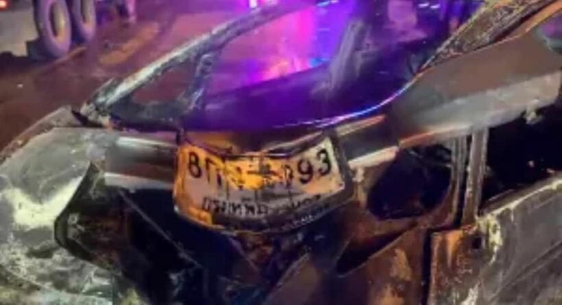 เก๋งหลุดโค้ง อัดต้นไม้ ไฟลุกท่วมทั้งคัน ย่างสด ดับ 3 ราย