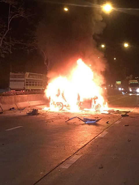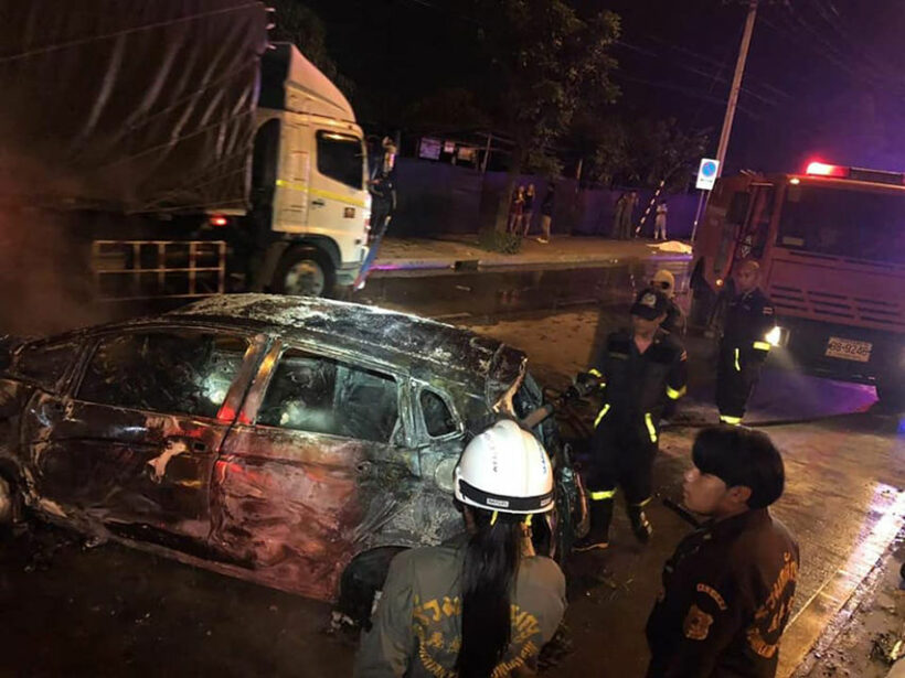 สันนิษฐานเบื้องต้นสาเหตุเพลิงไหม้เกิดจากอุบัติเหตุเสียหลักชนต้นไม้ทำให้เกิดเพลิงลุกไหม้