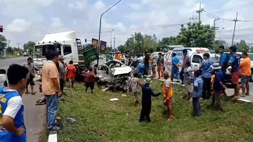 ขอนแก่น – 18 ล้อหลับใน พุ่งชนกระบะเต็มแรง ดับ 3
