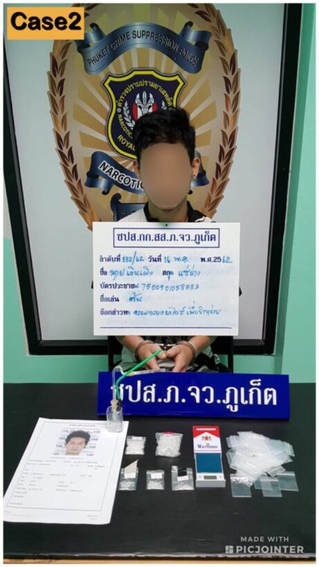 ส่วนคดีที่ 2 จับกุมตัว นายเอินเผิง หรือต้น แซ่ย่าง อายุ 25 ปีพร้อมด้วยของกลาง ยาไอซ์ น้ำหนัก 31.33 กรัม เครื่องชั่งน้ำหนักดิจิตอล 1 เครื่อง โทรศัพท์ จำนวน 1 เครื่อง ตรวจยึดตาม พรบ.มาตรการฯ รถบิ๊กไบค์ จำนวน 1 คัน บัญชีธนาคาร จำนวน 1 บัญชี โดยกล่าวหาว่า “มียาเสพติดให้โทษประเภท1 (ไอซ์) ไว้ในครอบครองเพื่อจำหน่ายโดยไม่ได้รับอนุญาต ” จับกุมที่ ม.3 ต.วิชิต อ.เมือง จ.ภูเก็ต จึงได้ควบคุมตัวผู้ต้องหานำส่งพนักงานสอบสวนสภ.วิชิต เพื่อดำเนินการตามกฎหมาย
