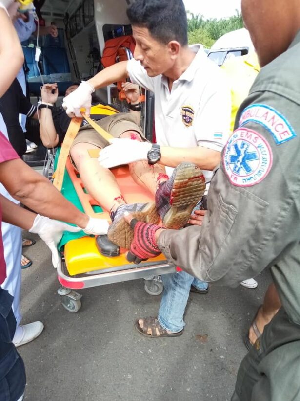 วันที่ 23 พ.ค.62 ร.ต.อ.ธีระวุฒิ เชื้อจักร์ รอง สว.สอบสวน สภ.ปลายพระยา จ.กระบี่ รับแจ้งมีอุบัติเหตุรถตู้ชนกับรถบรรทุกปาล์ม มีผู้บาดเจ็บหลายราย เหตุเกิดบนถนนเซาเทินซีบอร์ด ม.7.ต.ปลายพระยา อ.ปลายพระยา จึงรายงานให้ผู้บังคับบัญชาทราบพร้อมรุดไปตรวจสอบ