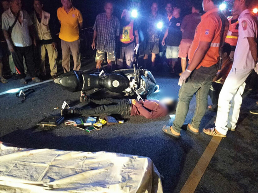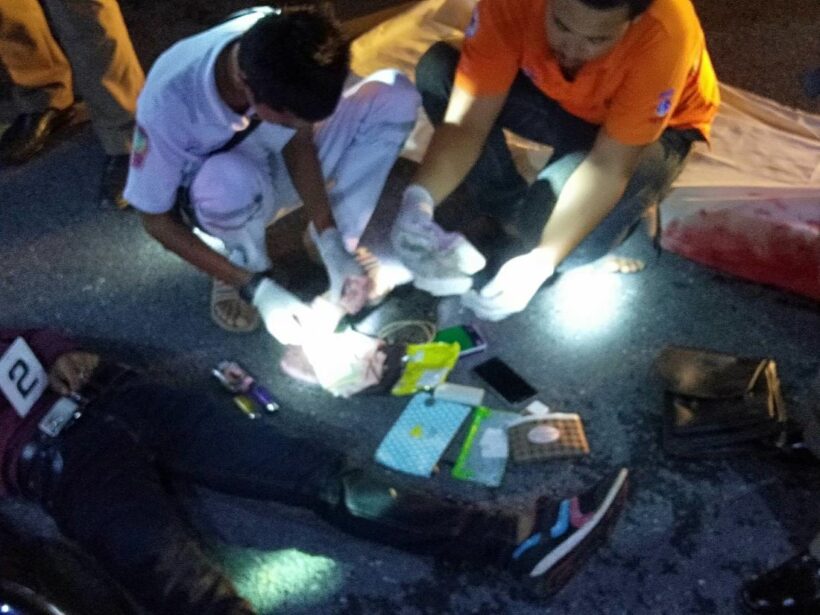 ที่เกิดเหตุ พบรถ จยย.ยี่ห้อยามาฮ่า สีดำ ไม่ปิดแผ่นป้ายทะเบียนล้มอยู่ มีร่างของนายเดชณรงค์ ใจสว่าง หรือ “หีด ทุ่งใหญ่” อายุ 30 ปี บ้านอยู่ อ.ทุ่งใหญ่ จ.นครศรีธรรมราช สภาพนอนหงายอยู่ติดกับรถจยย.ชันสูตรศพเบื้องต้นพบบาดแผลถูกยิงด้วยอาวุธปืนไม่ทราบขนาด กระสุนเจาะเข้าทะลุใต้ตาซ้าย 1 นัด และกลางหน้าผาก 1 นัด กระสุนทะลุท้ายทอย ตรวจสอบที่เกิดเหตุพบกระเป๋าสะพายแบบหนังสีน้ำตาลตกอยู่ 1 ใบ ตรวจสอบในกระเป๋า พบเงินสดกว่า 2 หมื่นบาท ในพงหญ้าข้างทางมีหมวกกันน๊อกของผู้ตายตกอยู่ด้วย เจ้าหน้าที่จึงเก็บไว้เป็นหลักฐาน