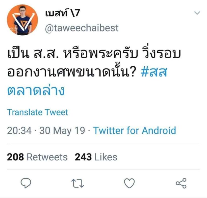 เบสท์ทวีชัย อนาคตใหม่ ดราม่า #สสตลาดล่าง – วันที่ 1 มิ.ย. จากกรณี นายทวีชัย วงศ์ไพโรจน์กุล หรือเบสท์ ผู้สมัคร ส.ส.พรรคอนาคตใหม่ กรุงเทพมหานคร โพสต์ทวิตเตอร์วิจารณ์การไปงานศพของสมาชิกสภาผู้แทนราษฎรว่า “เป็นส.ส.หรือพระครับ วิ่งรอบออกงานศพขนาดนั้น? #สสตลาดล่าง”
