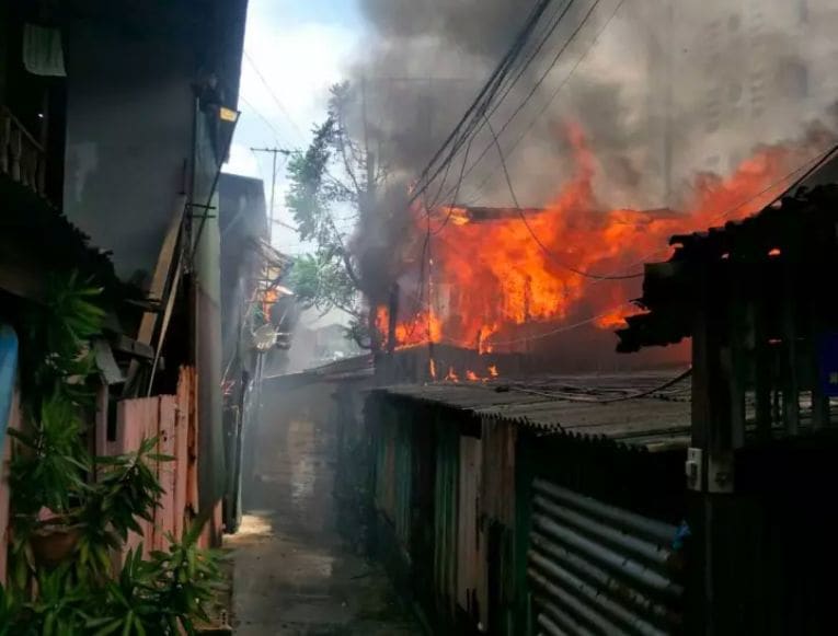 ไฟไหม้ชุมชนริมคลองแจ้งวัฒนะ บ้านวอด 5-6 หลัง
