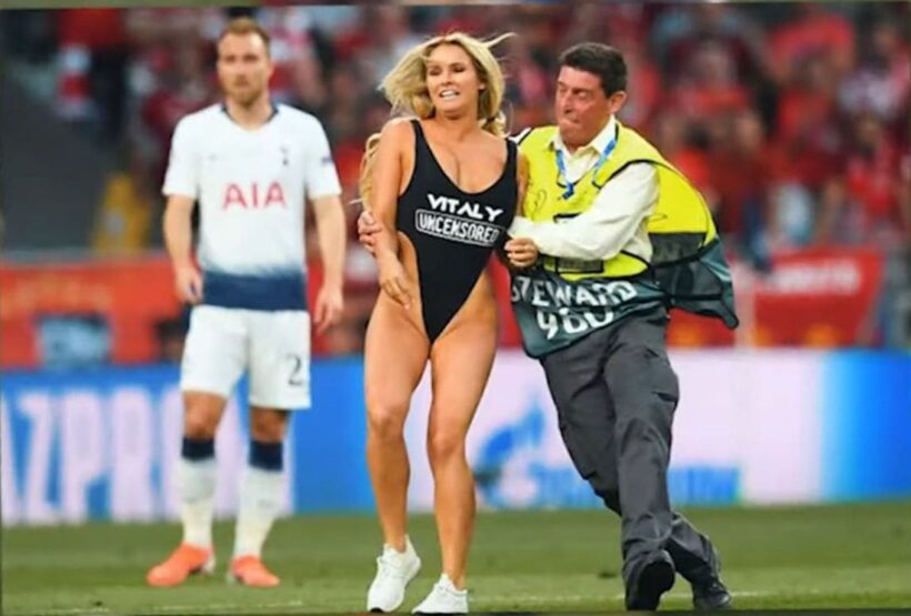 เหล่าสาวกแฟนบอลทั้งหลายคงไม่มีใครลืมภาพสาวสวยอวบอึ๋มที่ลงไปวิ่งในสนามขณะที่กำลังมีการแข่งขันนัดชิงชนะเลิศ ศึกยูฟ่าแชมเปี้ยนส์ลีกคู่ชิงแชมป์ระหว่างลิเวอร์พูล พบกับสเปอร์ส ท่ามกลางเสียงเชียร์จากผู้ชม และความงงงวยและตะลึงในความเซ็กซี่ของเหล่าขุนศึกของทั้งสองทีม
