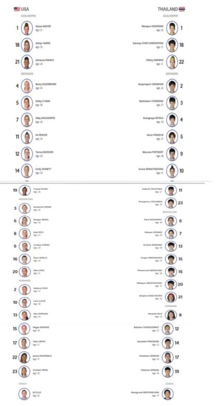 รายชื่อนักฟุตบอลหญิงทีมชาติไทยและสหรัฐอเมริกา