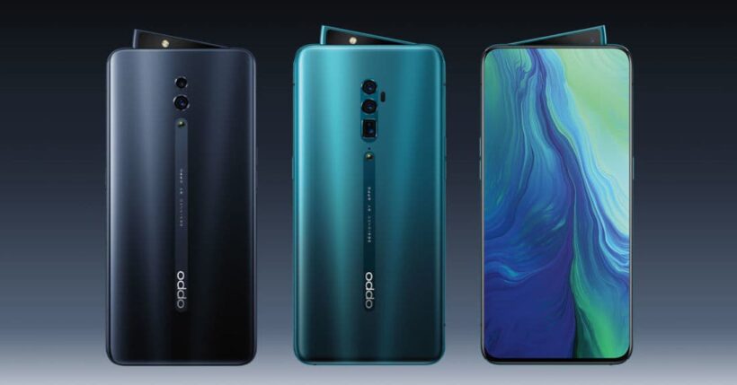 Oppo Reno 10x Zoom เปิดตัวไปเมื่อเดือนเมษายน 2019 มาพร้อมหนัาจอ 6.60 นิ้ว ที่ความละเอียด 1080×2340 พิกเซล ชิพเซ็ตเป็น Snapdragon 855 แรม 6GB ความจำที่ 128GB กล้องหลัง 3 ตัวที่ 48, 13 และ 8 ล้านพิกเซล กล้องหน้าแบบสไลด์ขึ้นขอบด้านบนฝั่งขวาของจอ ในลักษณะสามเหลี่ยม ที่ความละเอียด 16 ล้านพิกเซล