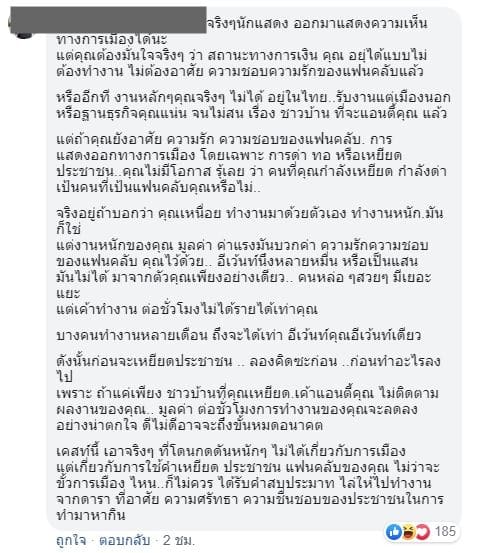 และคอมเมนต์ที่โยงเข้าสู่การวิจารณ์เมืองปัจจุบัน และความแตกต่างของคนที่นักแสดงหนุ่มเคยโพสต์เหยียดหยาม