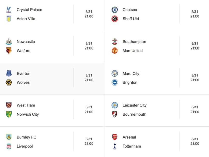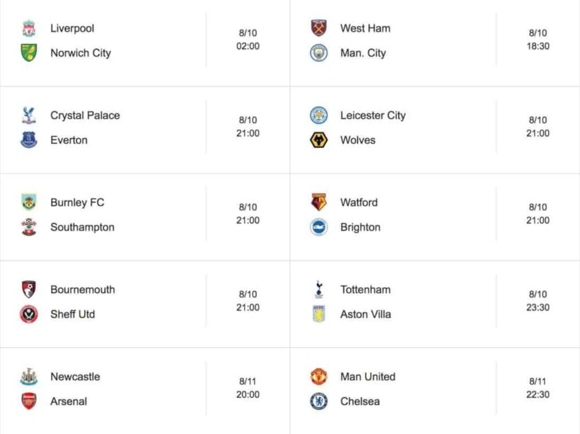 ตารางพรีเมียร์ลีก ฤดูกาล 2019-20 เริ่มเปิดกระดาน 9 สิงหาคม 2019